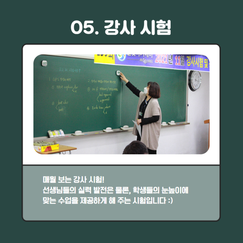선생님이 시험을 보는 이유 중 하나가 바로 학생들에게 최고의 강의를 선사하기 위함이라고하니,