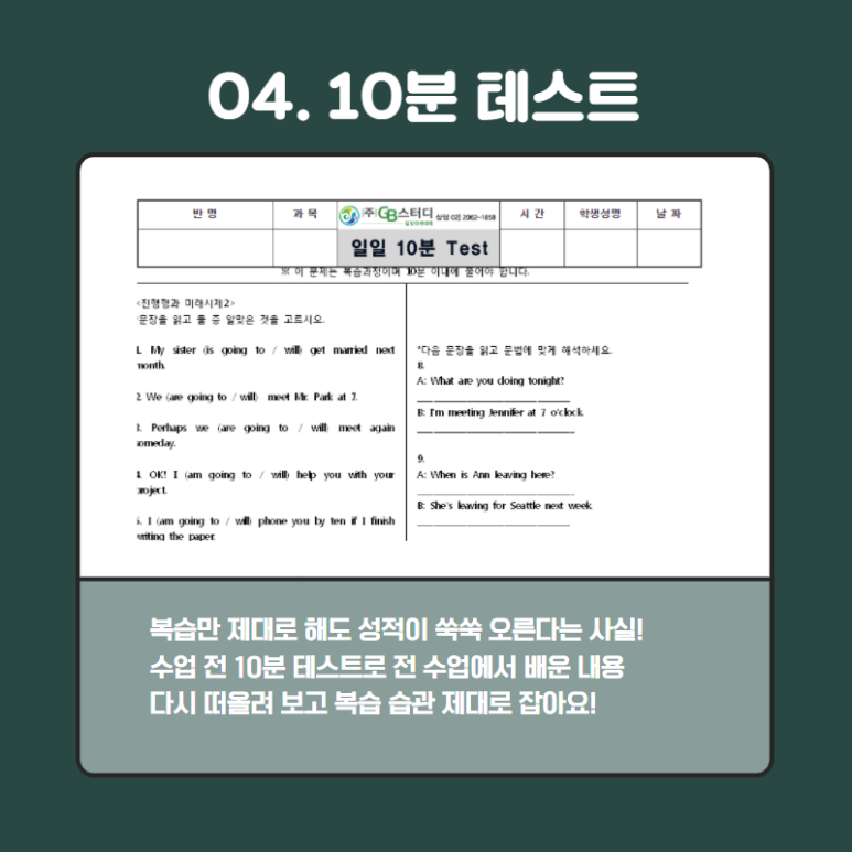 이 외에도 영어 영재 교실, 10분 테스트가 영어 실력을 향상시키는 데 도움을 주었다고 해요.